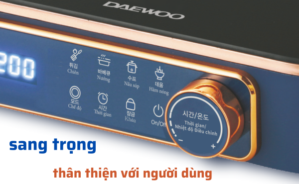 Bếp hồng ngoại Daewoo DWI-2215B được trang bị bảng điều khiển cảm ứng, giúp người dùng dễ dàng thao tác và điều chỉnh mức nhiệt, thời gian nấu một cách chính xác. Việc sử dụng bảng điều khiển cảm ứng giúp bạn dễ dàng điều chỉnh mà không cần phải lo lắng với song ngữ Việt - Hàn