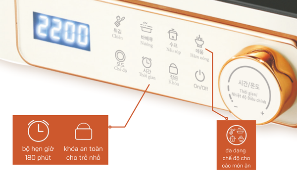 Bếp hồng ngoại Daewoo DWI-2238MW không chỉ giúp bạn chiên, xào mà còn có thể dùng để nấu canh, hầm, luộc, nướng, làm các món bánh hoặc các món nướng. Bạn có thể tận dụng bếp để chế biến nhiều loại món ăn khác nhau mà không cần dùng đến nhiều thiết bị nấu nướng khác