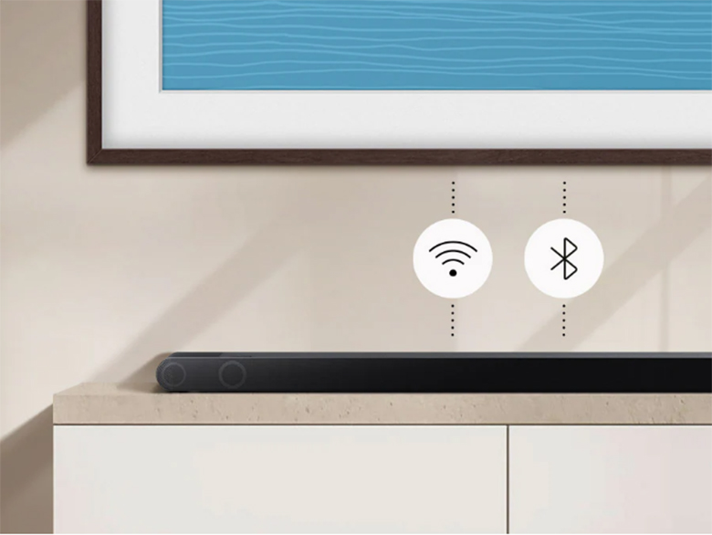 Loa Soundbar Samsung HW-S800B/XV dễ dàng kết nối Bluetooth với tivi và điện thoại thông minh cho phép bạn thưởng thức những bản nhạc yêu thích với chất lượng âm thanh hàng đầu ở bất cứ đâu mà không cần dây nối.