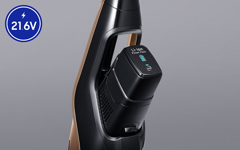 Máy hút bụi cầm tay Samsung 3in1 VS03R6523J1/SV là đối tác đáng tin cậy trong việc dọn dẹp nhà cửa với viên pin Li-ion 21.6V. So với nhiều đối thủ cùng tầm giá khác thì thông số năng lượng này của máy hút bụi Samsung 3in1 VS03R6523J1/SV được đánh giá khá cao.