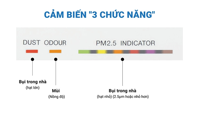 Máy lọc không khí Daikin cho phép người dùng có thể theo dõi và nhận biết chất lượng không khí trong nhà, máy lọc khí Daikin được trang bị cảm biến độ nhạy cao, cho phép nhanh chóng phát hiện bụi thường, bụi mịn (PM2.5) và mùi hôi