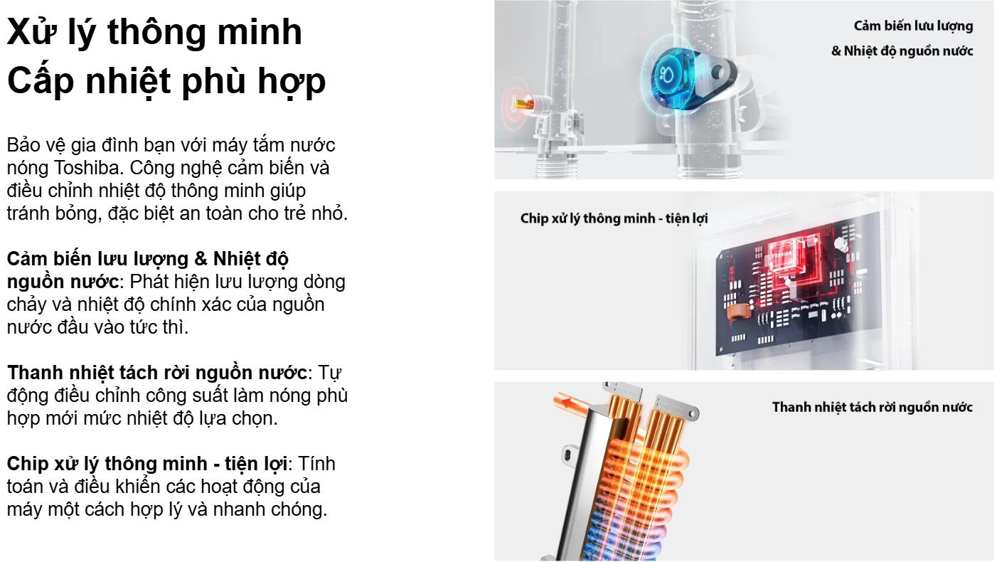 Máy nước nóng trực tiếp có bơm Toshiba TWH-45EMC1PVN(K)-KB được trang bị hệ thống ngắt điện tự động khi quá nhiệt, mang đến sự yên tâm tuyệt đối khi sử dụng. Ngoài ra, sản phẩm đạt chuẩn chống nước IP25, bảo vệ toàn diện khỏi nước bắn và độ ẩm, đảm bảo độ bền và hiệu suất lâu dài.