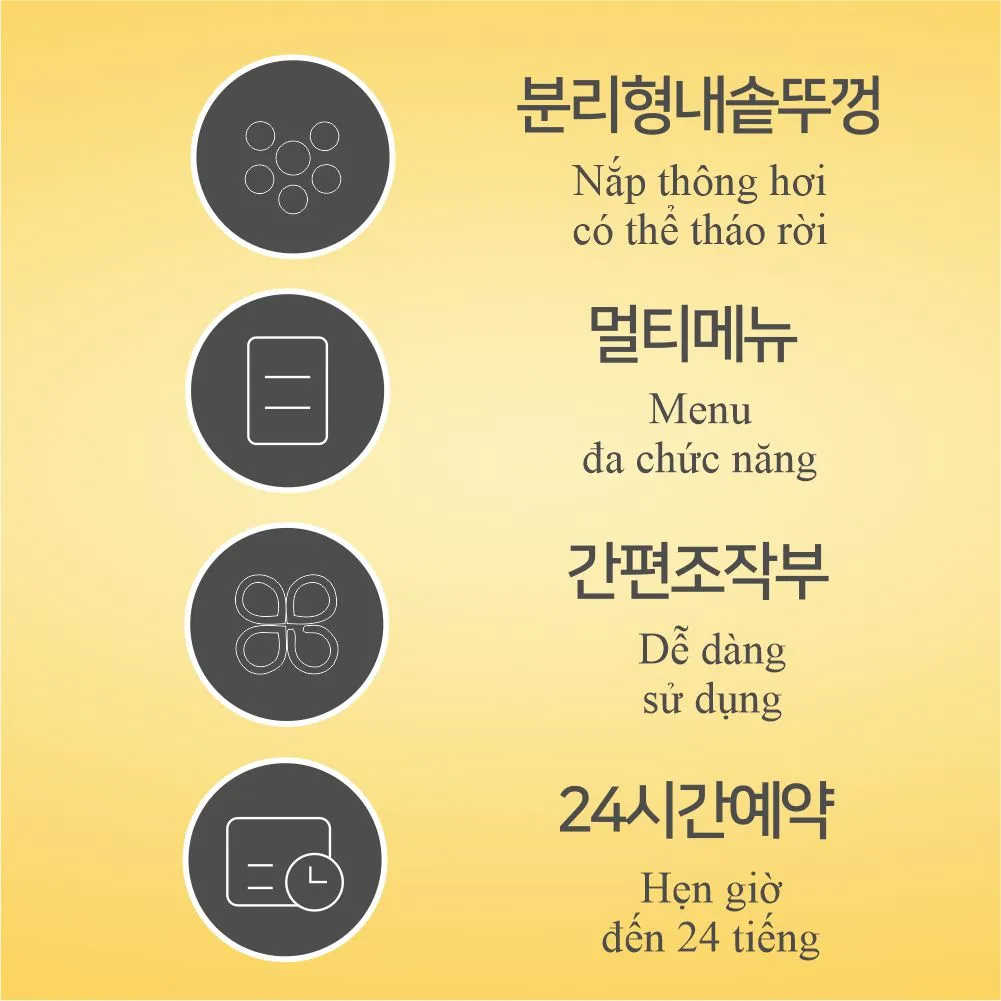 Nồi cơm điện Daewoo DWRC-Y201 có tích hợp chức năng hẹn giờ, giúp bạn có thể lên lịch trước cho việc nấu cơm mà không cần phải giám sát liên tục.