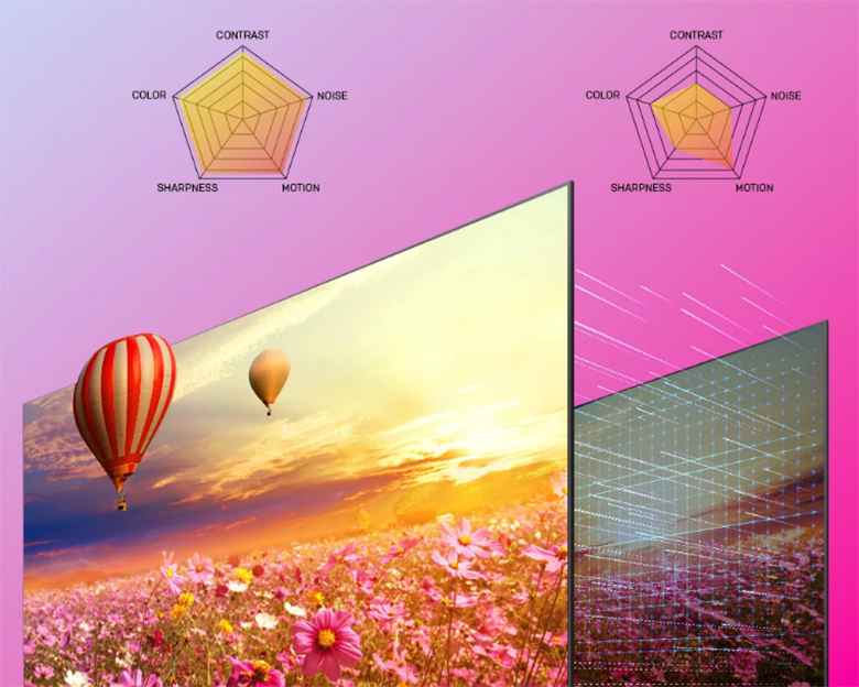 Tính năng giảm nhiễu thông minh sẽ hỗ trợ tivi giảm nhiễu và khôi phục hình ảnh về định dạng gốc giúp hình ảnh sắc nét và chân thực hơn.